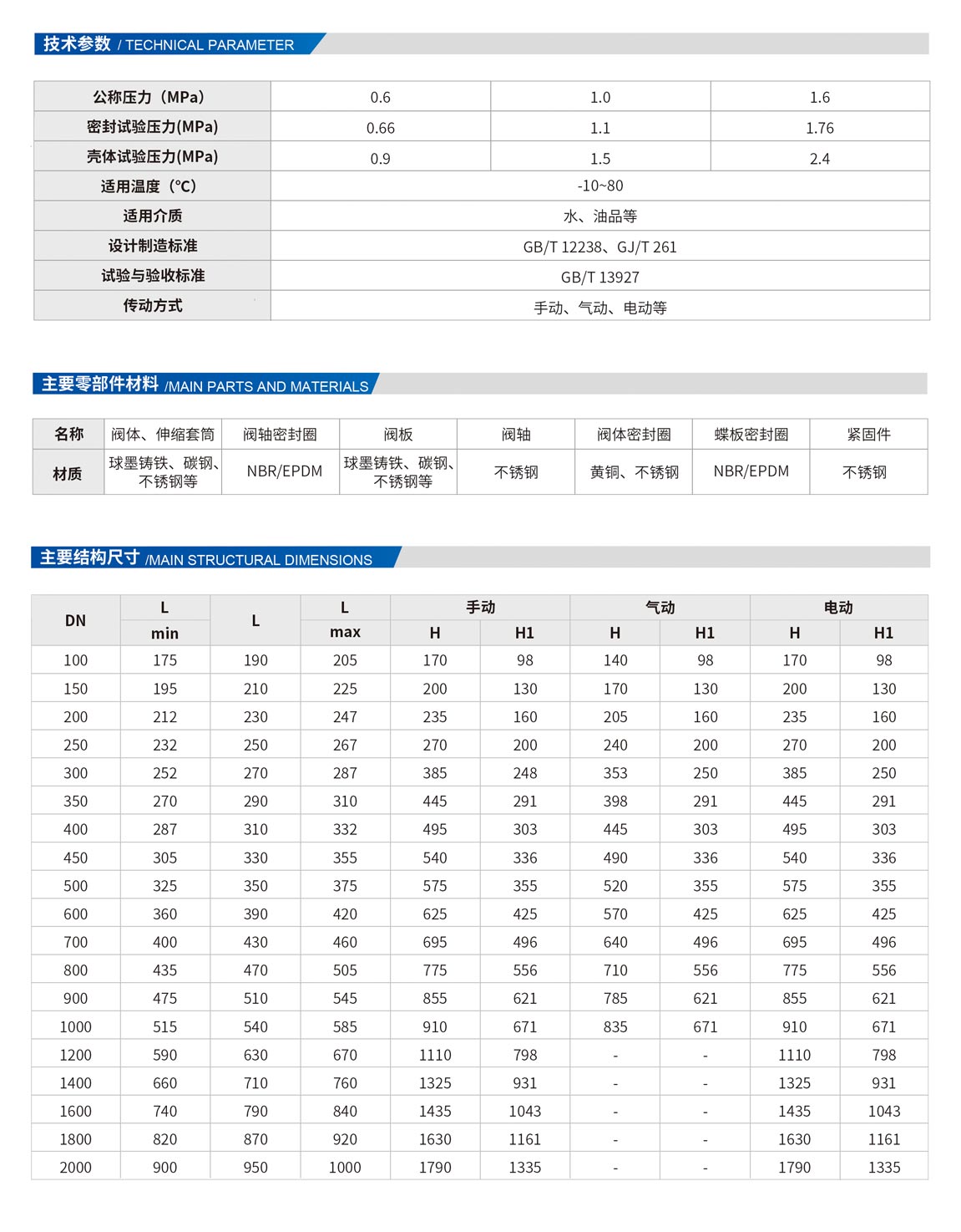 伸縮蝶閥集蝶閥與伸縮器于一體,主要用于給排水及電力、礦山等管道,既有蝶閥的使用功能,又具備伸縮器的功能,便于管道安裝與檢修,且對管道有一定的保護(hù)作用,根據(jù)不同工況要求,伸縮蝶閥可采用硬密封及軟密封兩種形式。